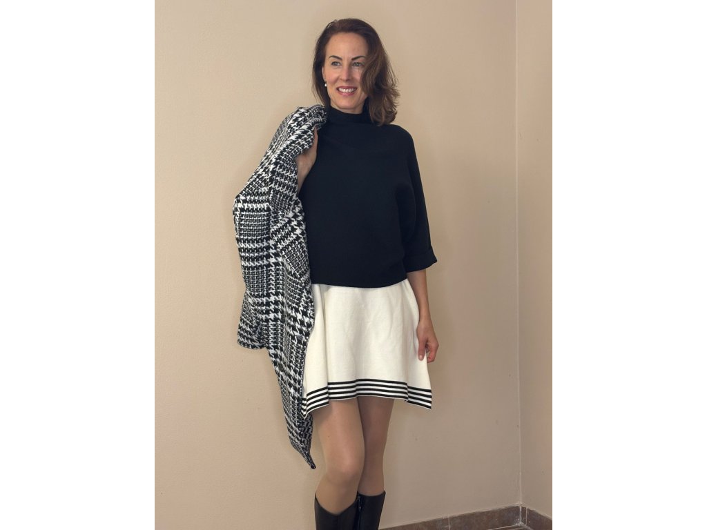 Hřejivé, jemné a příjemné na dotek – tyto midi šaty ze směsi 49% viskózy, polyesteru a nylonu nabízejí komfort i styl. Elastický materiál se krásně přizpůsobí postavě a zajistí pohodlné nošení po celý den. Nízký stojáček a decentní proužek podtrhují jemnou eleganci a nadčasový ženský vzhled. Tento kousek Vám zpříjemní celý den jak v kanceláři, tak na akci, kde chcete působit velice elegantně a přitom přirozeně.