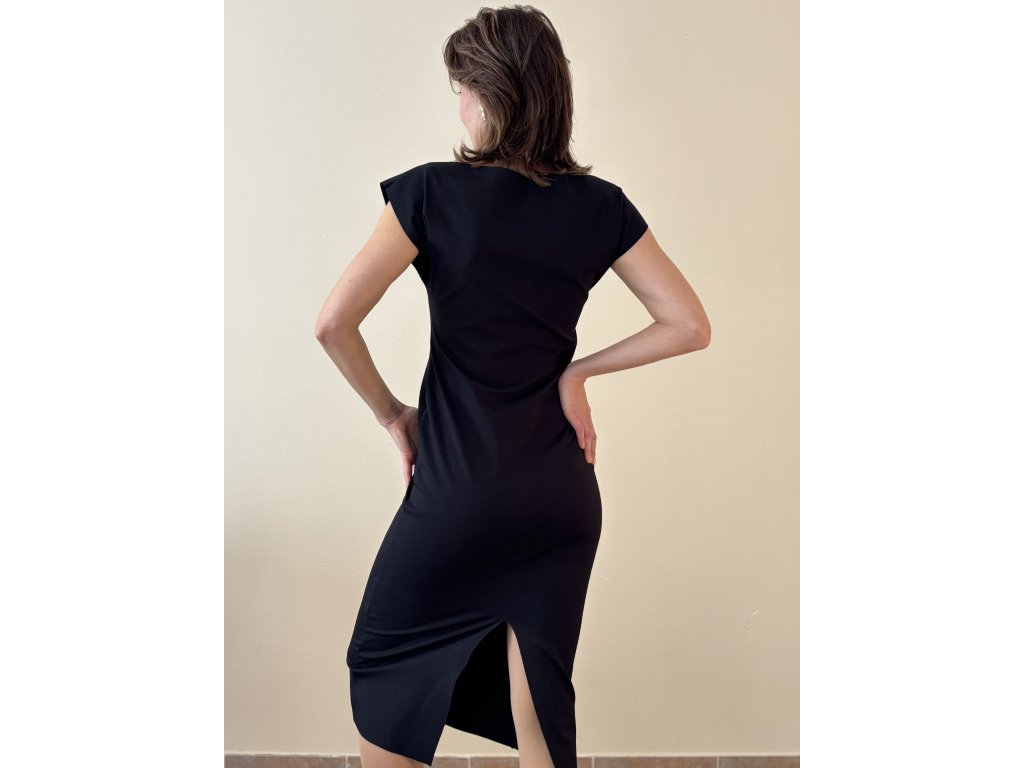 Tyto elegantní, moderní šaty přiléhavého střihu zaujmou svým čistým designem a smyslem pro detail. Minimalistická linie je zvýrazněna rozparkem, který dodává modelu jemnou dávku ženskosti a volnosti pohybu.