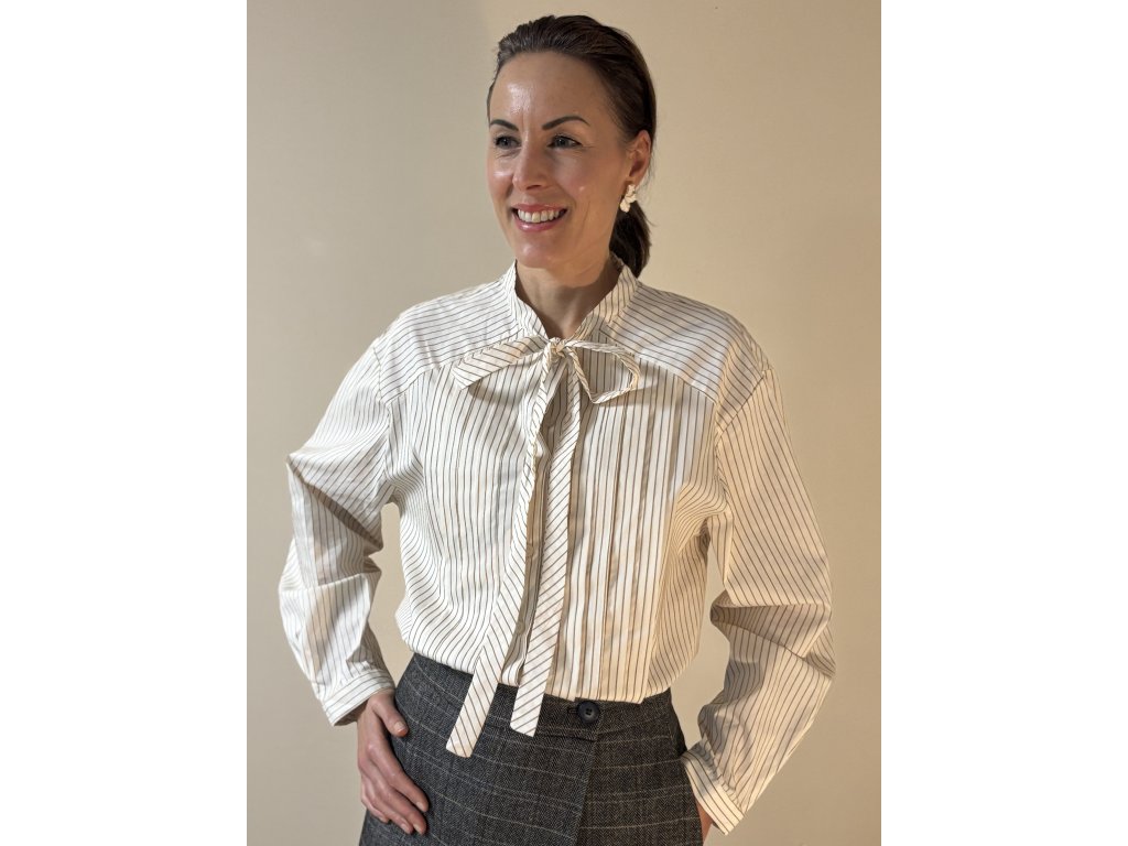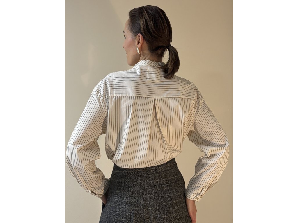 Tato elegantní halenka je ztělesněním ženské jemnosti a nadčasového stylu. Jemné skládání na přední části i u manžet rukávů dodává modelu sofistikovaný a uhlazený vzhled, zatímco mašlička podtrhuje jeho něžný charakter. Halenka je ušitá ze směsi 76% bavlny, polyamidu a elastanu, materiálu příjemného na dotek, prodyšného a pohodlného po celý den.