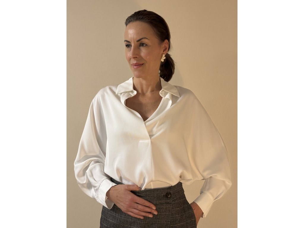 Tato elegantní halenka ze 100% viskózy s netopýřími rukávy zaujme svým nadčasovým vzhledem a ležérní elegancí. Volný střih dodává modelu lehkost a zaručuje maximální pohodlí při nošení. Díky splývavé viskóze je halenka mimořádně příjemná na dotek, hebká k pokožce a krásně se přizpůsobí pohybu.
