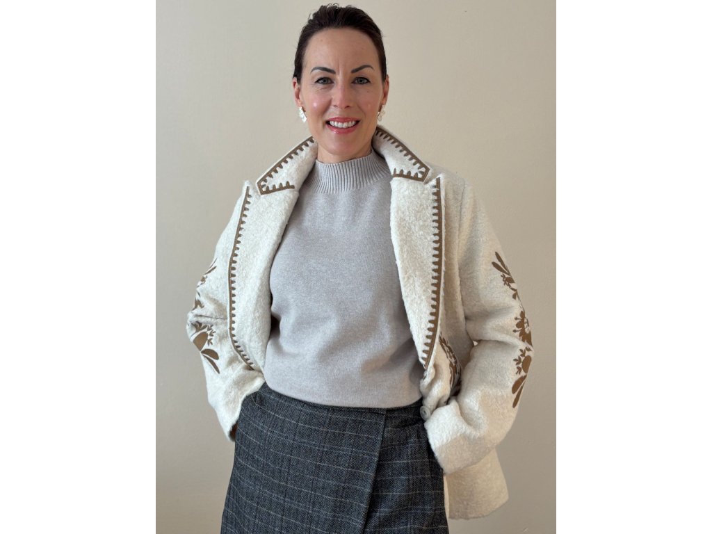Tento elegantní a moderní jednořadý kabát v oversize střihu je ideální volbou pro ženy, které milují čisté linie s nápadem. Precizně zpracované vyšívané motivy mu dodávají osobitý charakter, zatímco podšívka zajišťuje pohodlí i v chladnějších dnech.