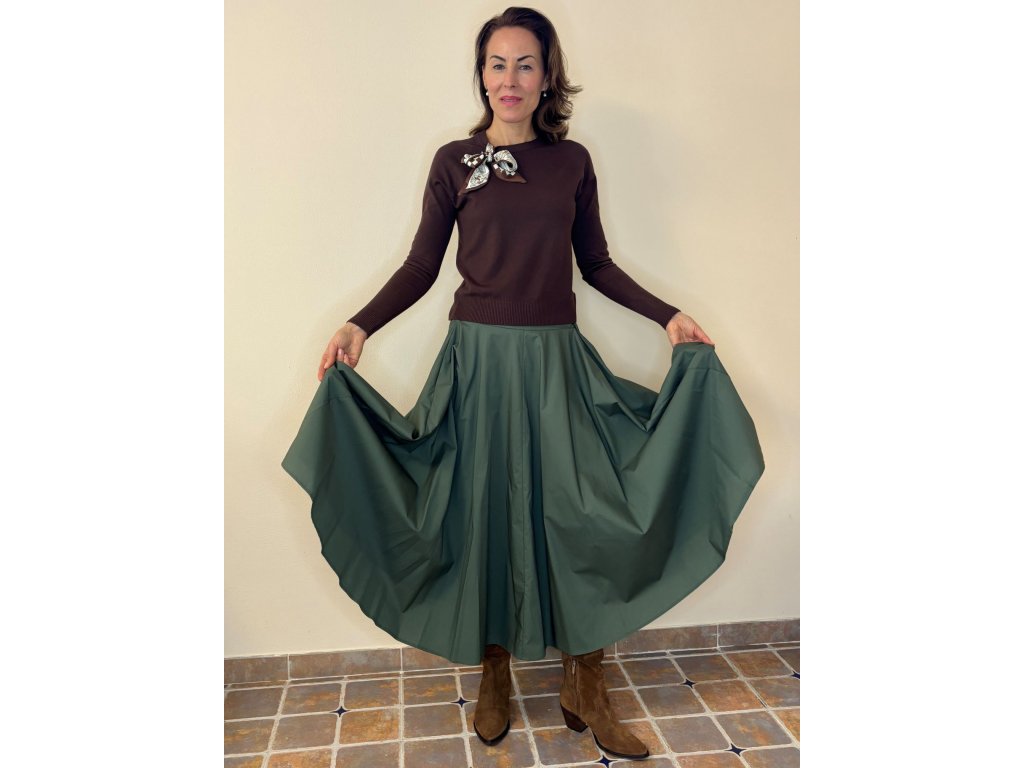 Tato sukně je jako stvořená pro ženy, které chtějí skloubit pohodlí s přirozenou elegancí. Díky kolovému střihu působí velmi ženským dojmem, zároveň však nabízí naprostou volnost pohybu, kterou oceníte nejen při každodenním shonu, ale i ve volném čase.