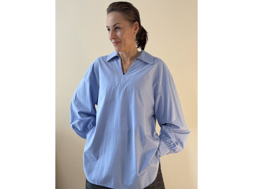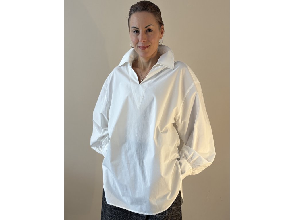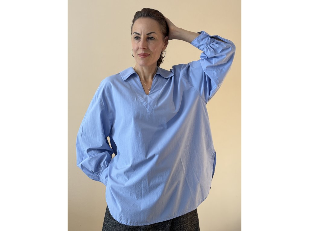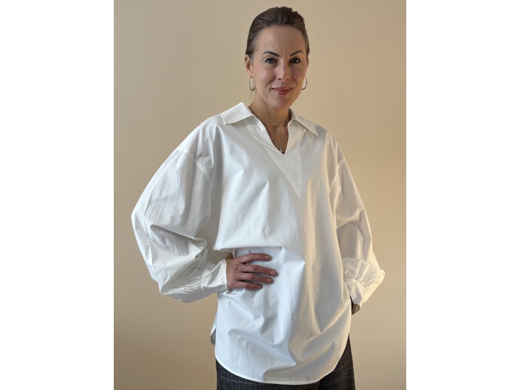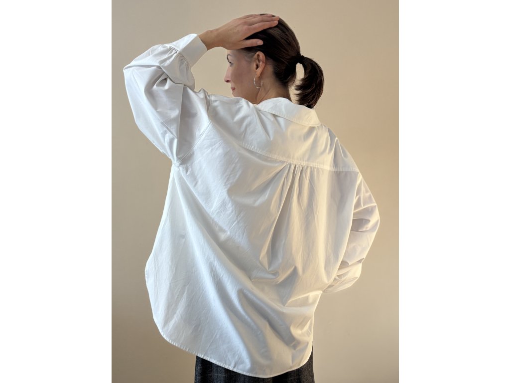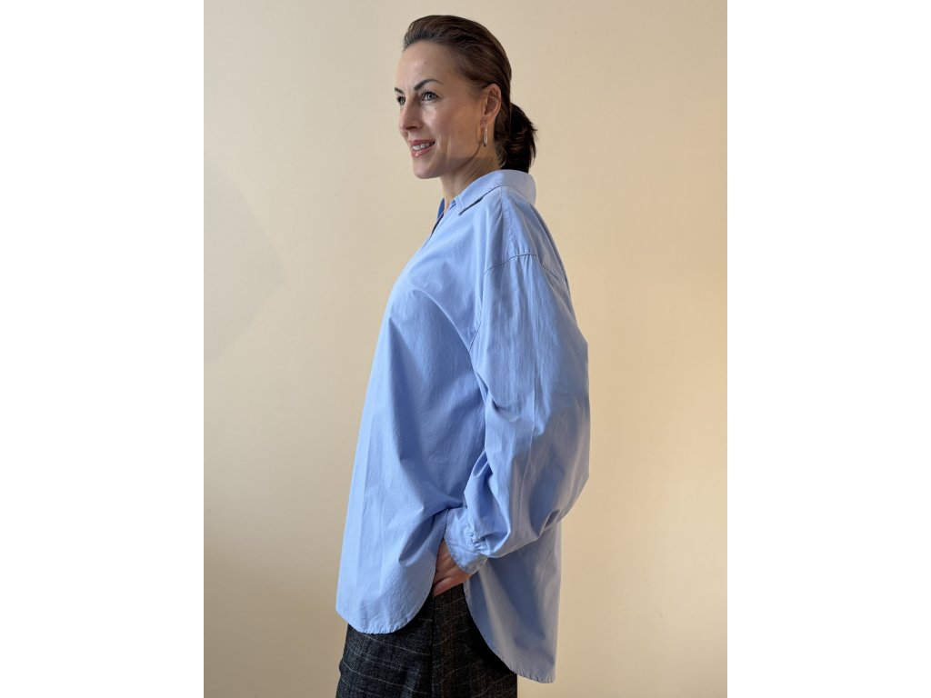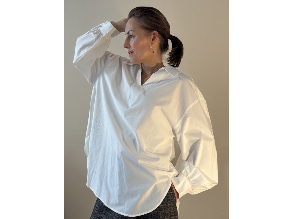 Tato nadčasová košile kombinuje sportovně elegantní vzhled s moderním střihem. Pokud si přes košili vezmete ještě pásek, zvýrazníte svoji ženskost. Výstřih do V dodává modelu jemnost, zatímco hluboké rozparky na bocích zajišťují elegantní pohyb a volnost při nošení. Oversize střih poskytuje maximální komfort a pohodlí po celý den, takže se skvěle hodí jak do práce, tak na volný čas. Košile je ušitá ze směsi 50 % bavlny a 50 % modalu, materiálu jemného na dotek, prodyšného a příjemného k pokožce.
