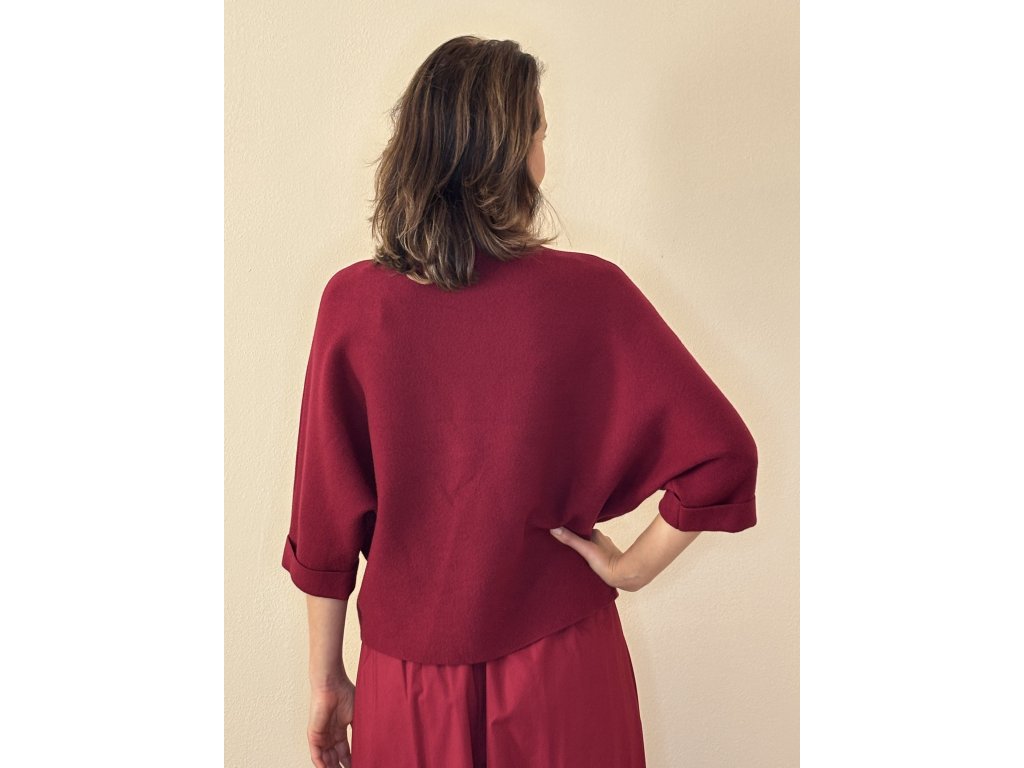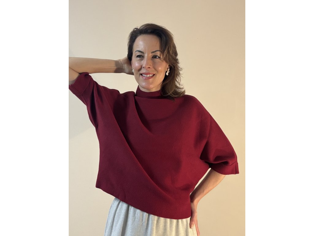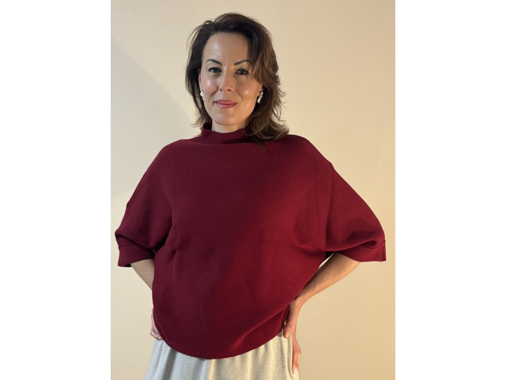 Hebký na dotek, lehký a mimořádně příjemný na nošení. Tento elegantní svetřík s netopýřími rukávy a jemným stojáčkem působí velice žensky a zároveň moderně minimalisticky.