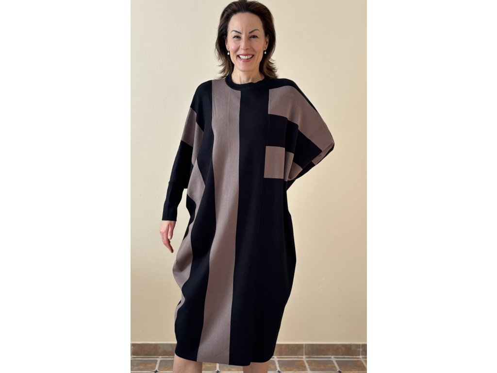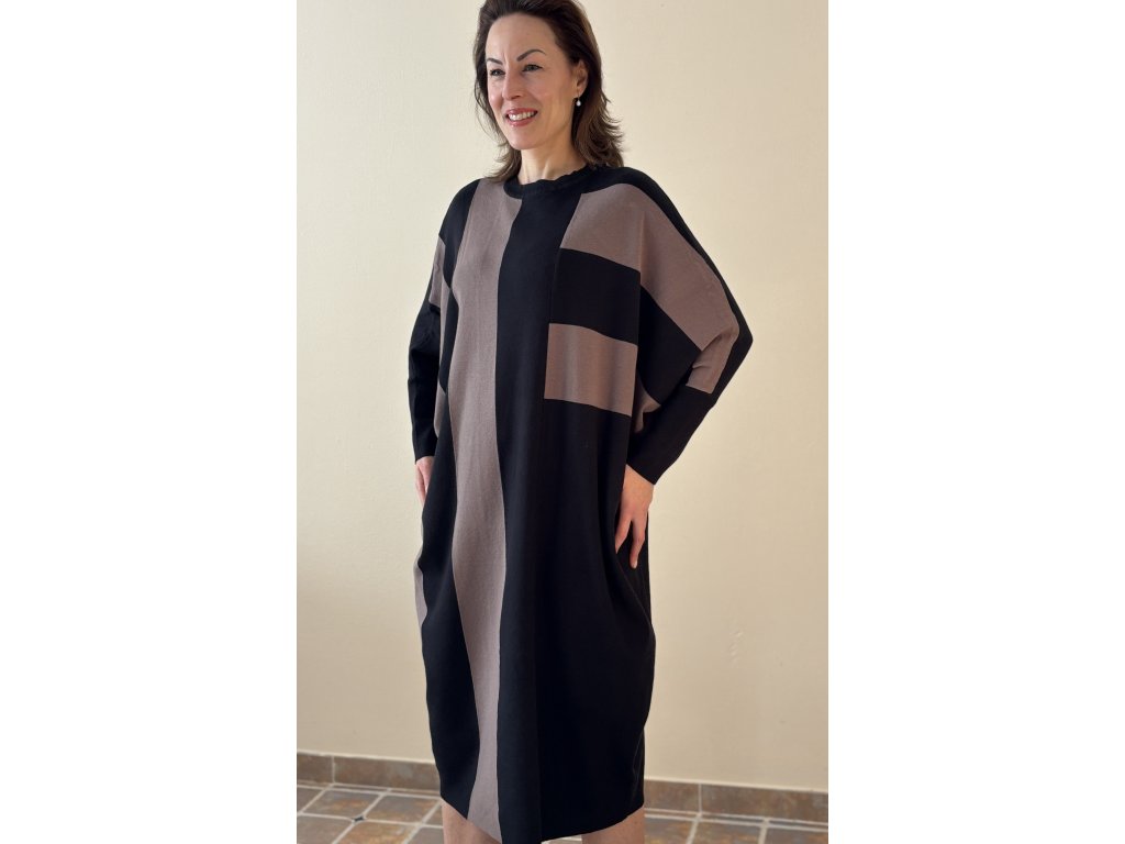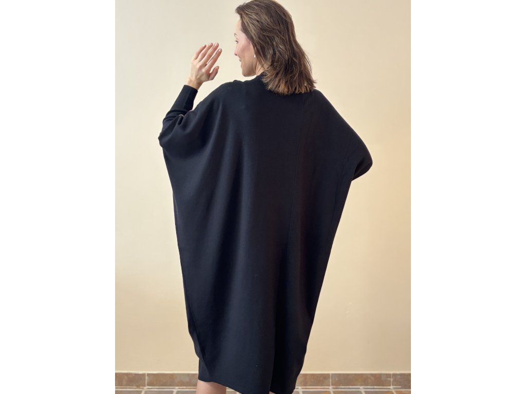 Velice elegantní šaty oversize střihu, s kratšími netopýřími rukávy, jemné na dotek a příjemné na tělo, hřejivé, ze směsi viskózy