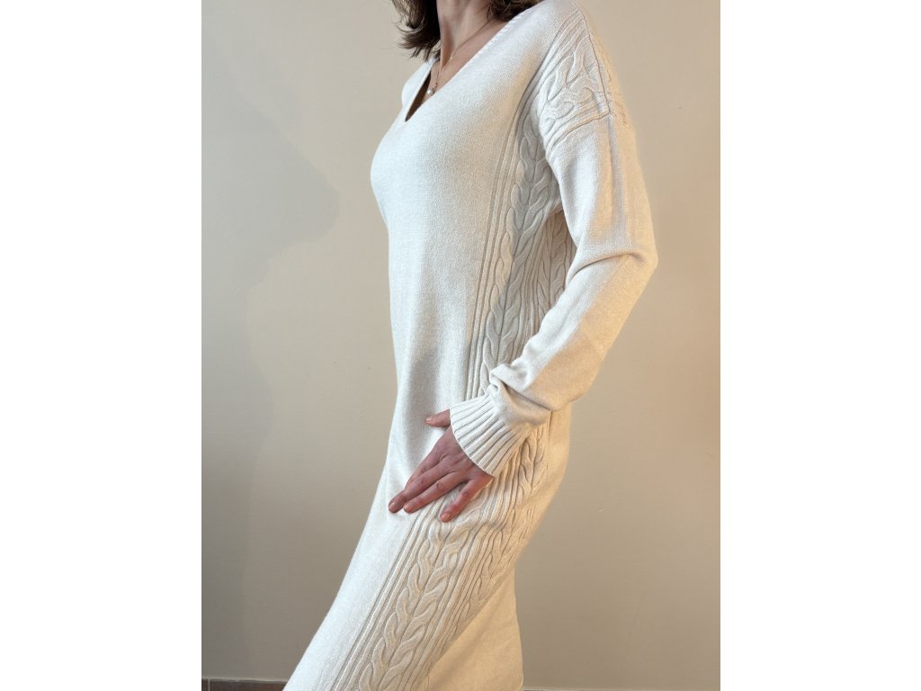 Tento sportovně elegantní kousek s rozparky a výrazným pleteným vzorem po bocích spojuje styl, funkčnost a ženskost. Je jemný na dotek, velmi příjemný na tělo a díky pružnosti krásně přilne k postavě, aniž by omezoval pohyb.