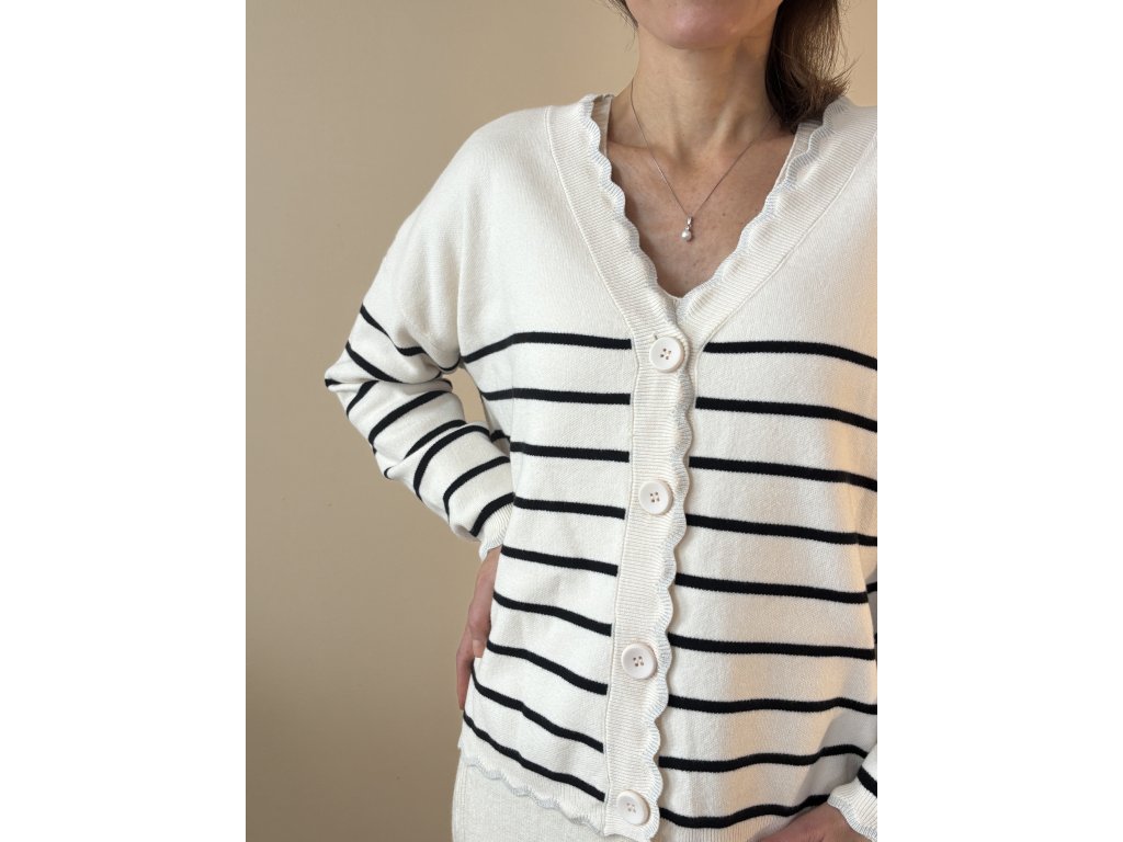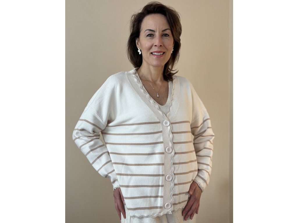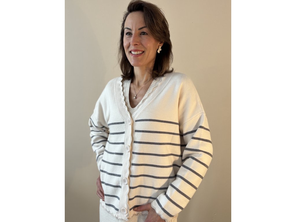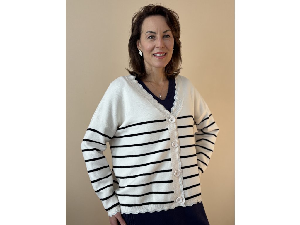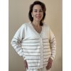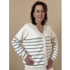 Tento velice elegantní a žensky nápaditý svetr zaujme svým výstřihem do V, vkusným detailem po celém obvodu a praktickým rozepínáním na knoflíky, které dodávají modelu lehkost a možnost variabilního nošení.