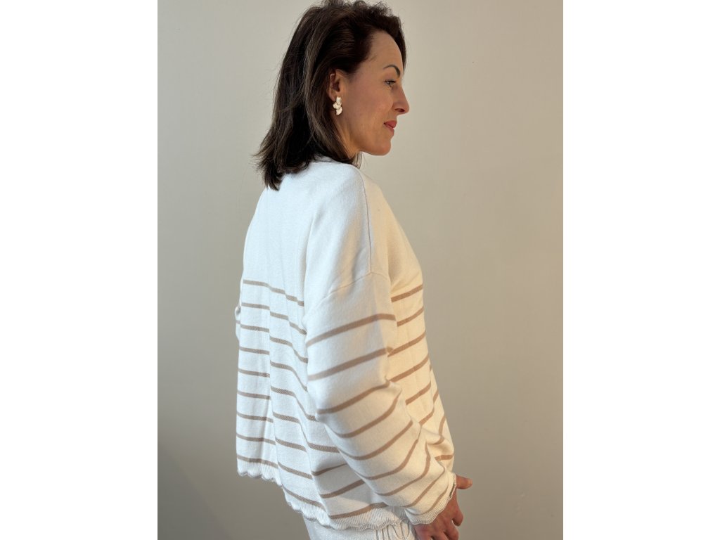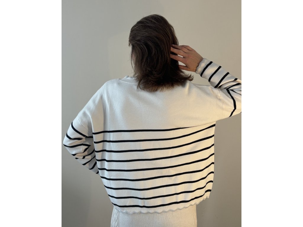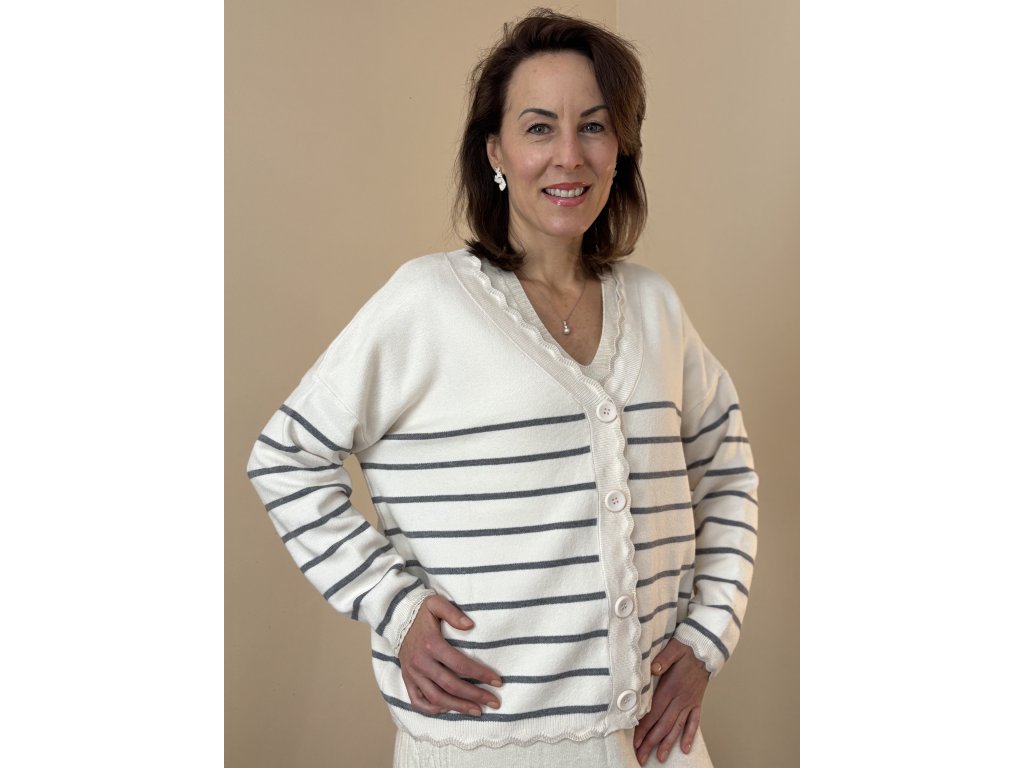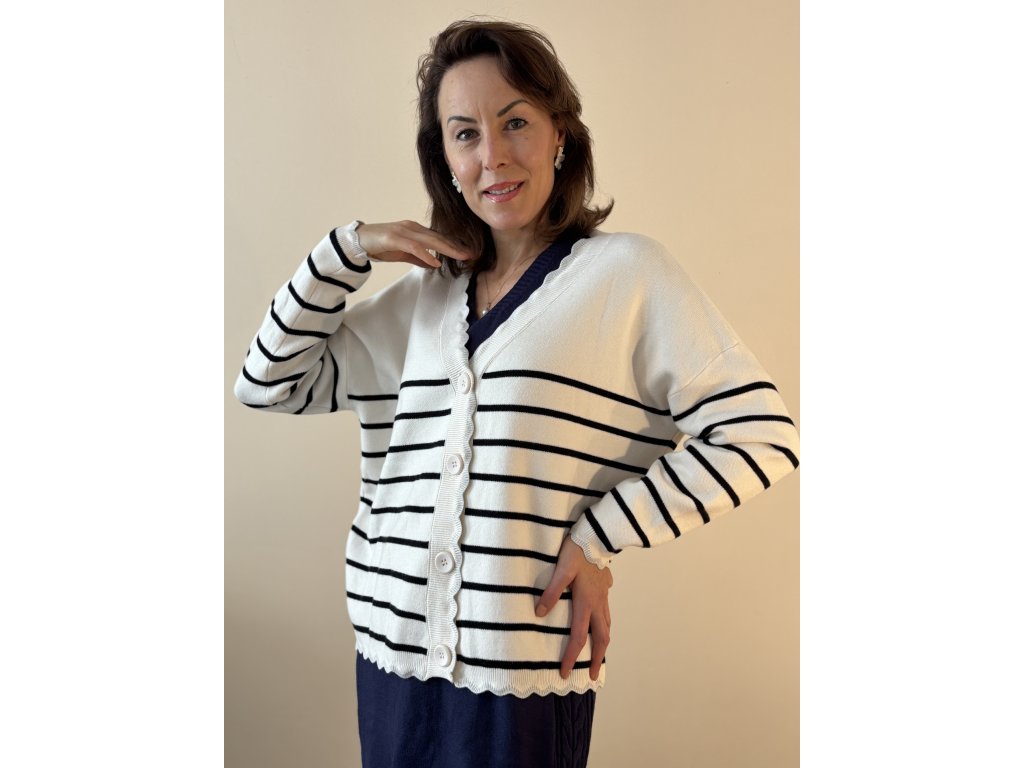 Tento velice elegantní a žensky nápaditý svetr zaujme svým výstřihem do V, vkusným detailem po celém obvodu a praktickým rozepínáním na knoflíky, které dodávají modelu lehkost a možnost variabilního nošení.