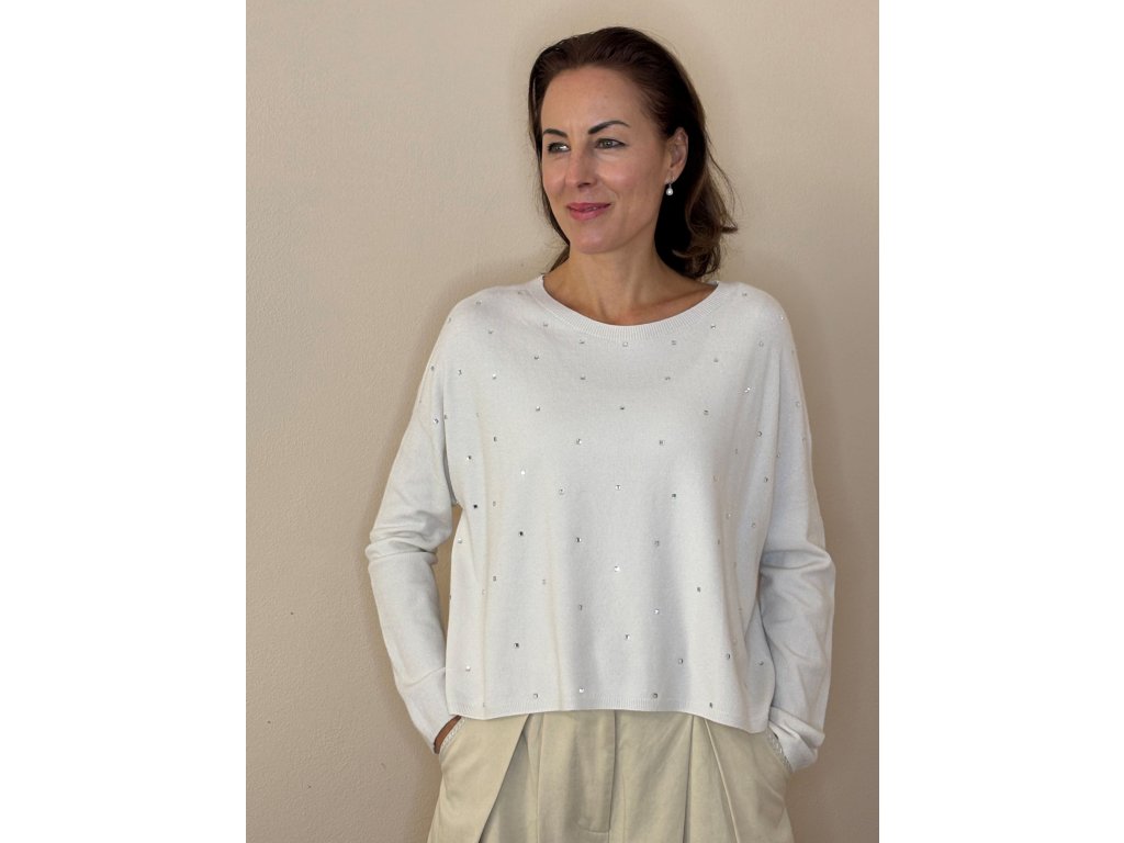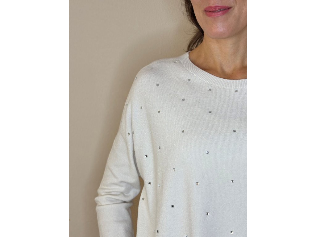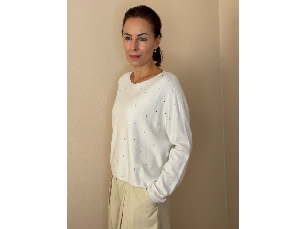 Velice elegantní svetr s rozsetými třpytkami, které dodávají nápaditost a originalitu. Z kvalitní směsi viskózy 48%, poliesteru a nylonu, která zajišťuje hebkost a hřejivost, lehce pružný a přesto odolný. Ideální pro každodenní nošení i slavnostní příležitosti.