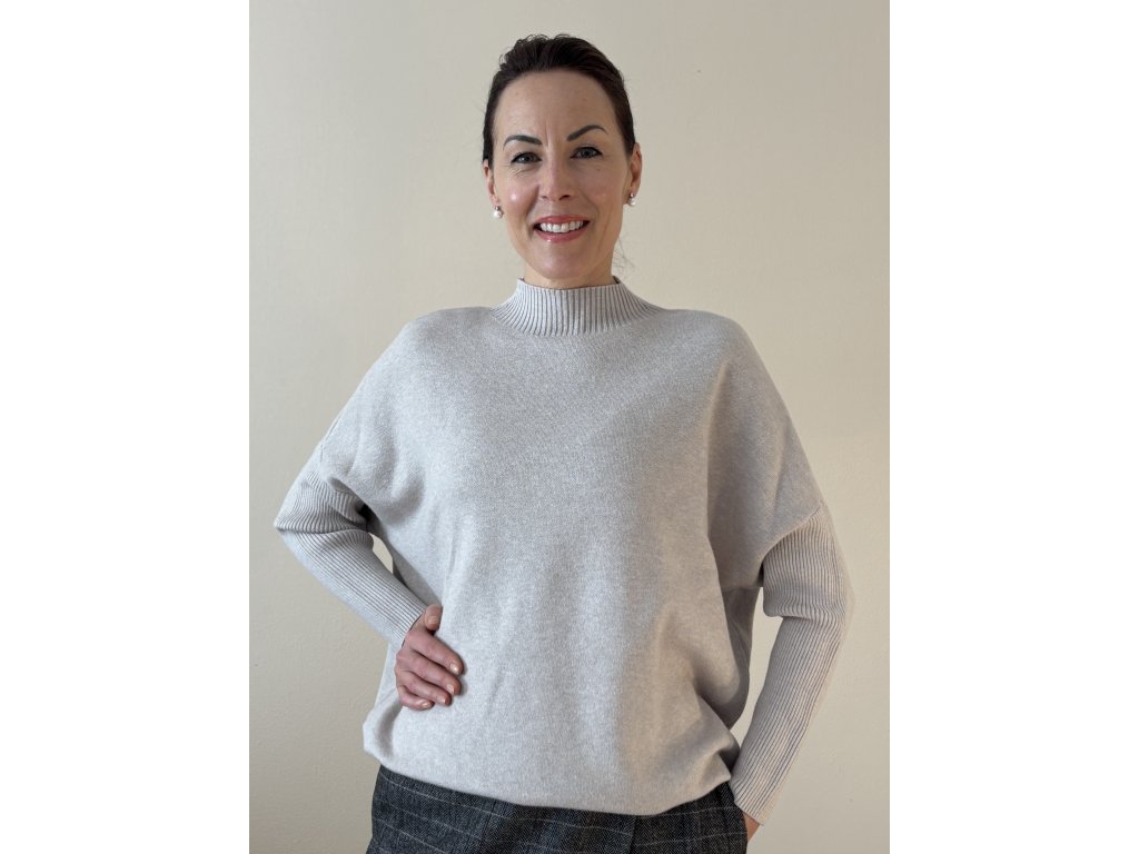 Hebký, teplý a nesmírně pohodlný ze směsi 49% viskózy, polyesteru a nylonu – tento svetřík spojuje minimalistickou eleganci, jemnost a zvýrazňuje ženskost. Stojáček spolu s netopýřími rukávy dodávají svetru velice pohodlný a současně volný střih, který krásně splývá a podtrhuje umocňuje ženskou krásu.
