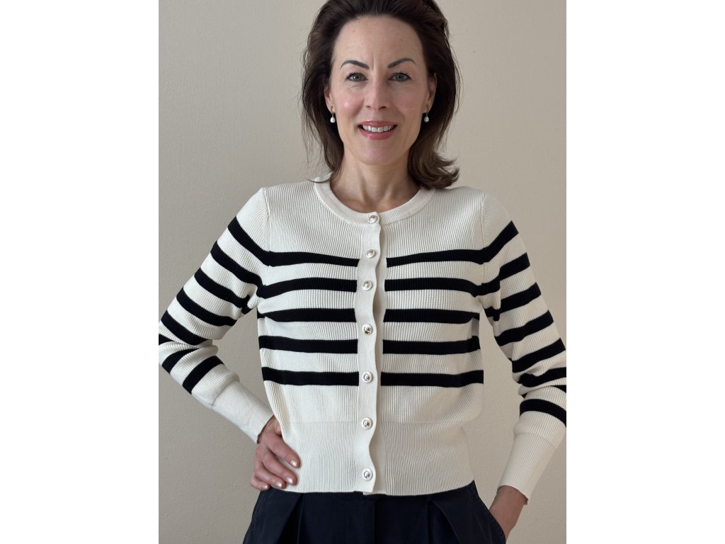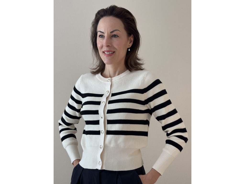 Stylový a přitom velice pohodlný. Teno sportovně elegantní svetřík ze směsi viskózy 49%, polyesteru a nylonu, zaujme svým elegantním proužkovaným vzorem a decentními zlatými knoflíčky, které mu dodávají nádech sportovní elegance.