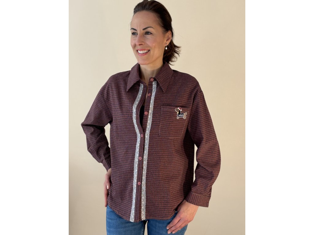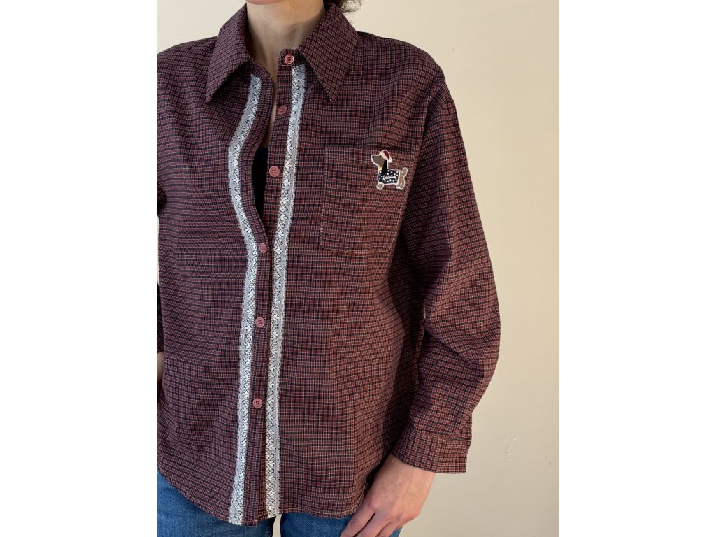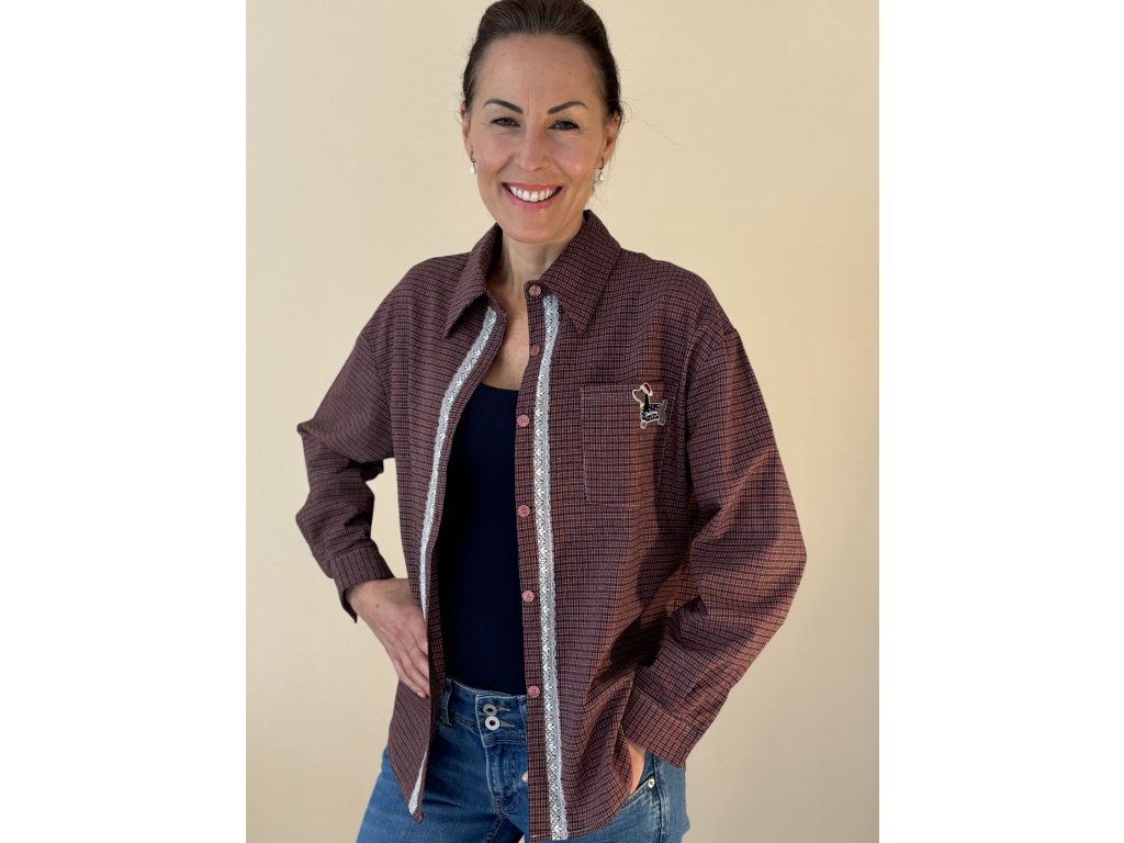 Tato volnočasová košile s vyšívaným pejskem na náprsní kapsičce a jemnou krajkou po obou stranách zapínání je hravým a nápaditým kouskem do každodenního šatníku. Prodloužený zadní díl zajišťuje pohodlí a volnost pohybu, zatímco detaily, jako je vyšívaný motiv a krajka, dodávají košili osobitý a moderní vzhled. Košile je ušitá ze 100 % bavlny, materiálu měkkého, prodyšného a příjemného na dotek, který poskytuje komfort po celý den.